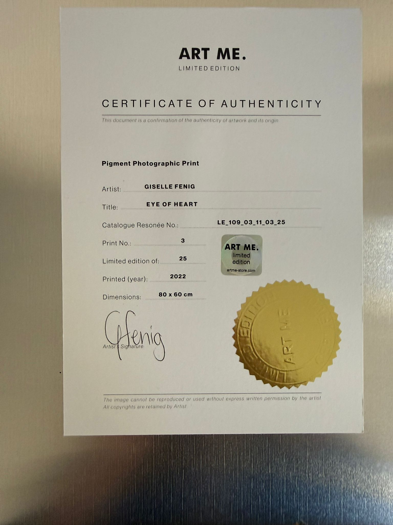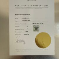 W tylnej części obrazu umieszczony certyfikat autentyczności z numerem seryjnym i sygnaturą autorki.