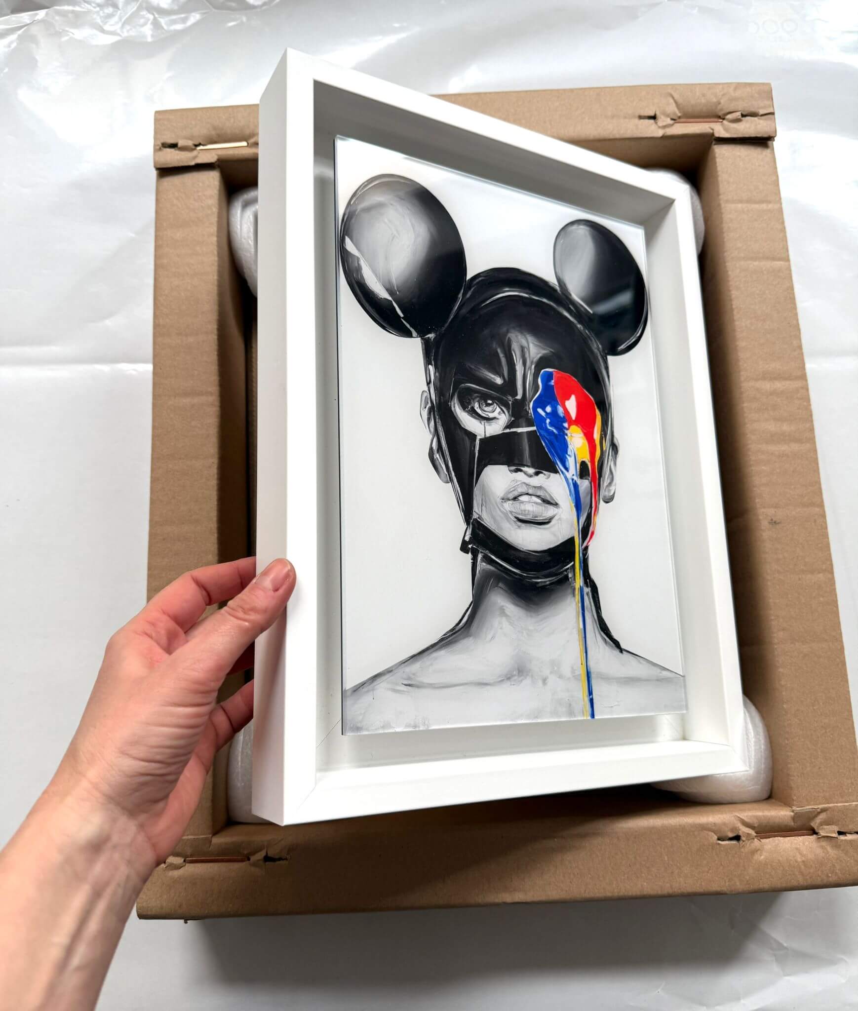 W tylnej części obrazu umieszczony certyfikat autentyczności z numerem seryjnym.