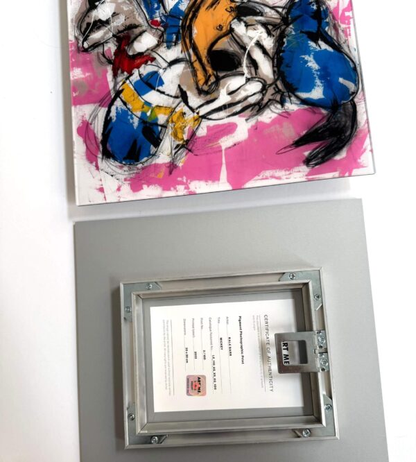 W tylnej części obrazu umieszczony certyfikat autentyczności z numerem seryjnym.