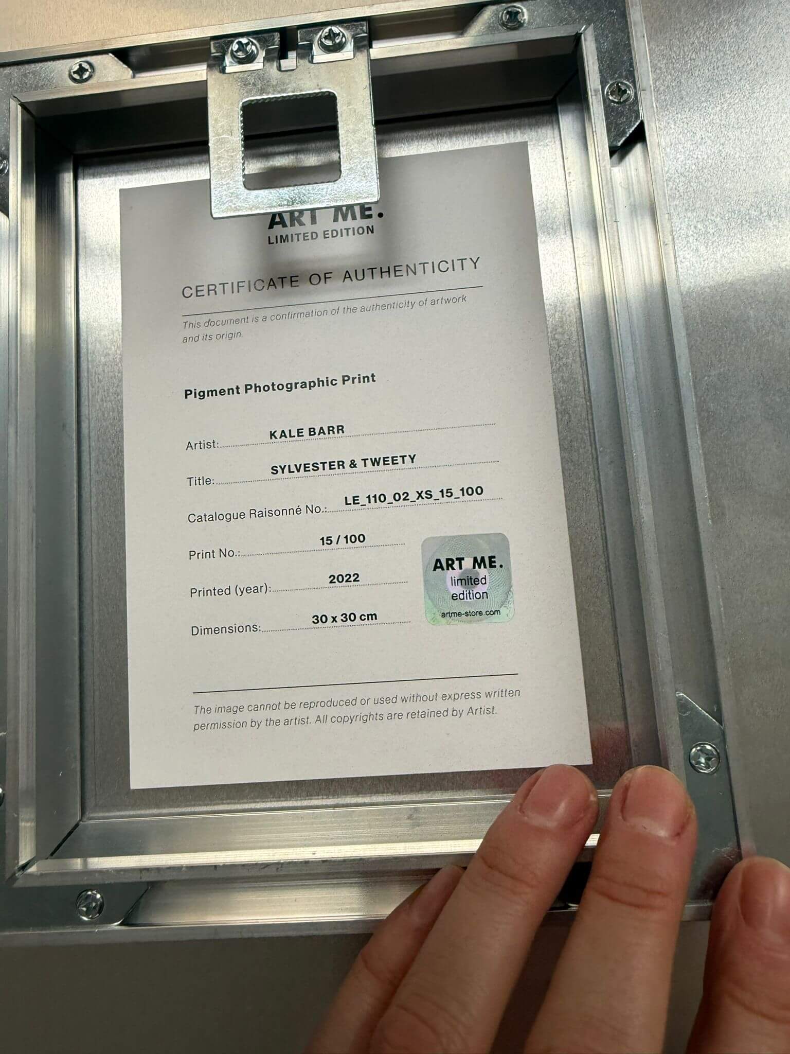 W tylnej części obrazu umieszczony certyfikat autentyczności z numerem seryjnym.