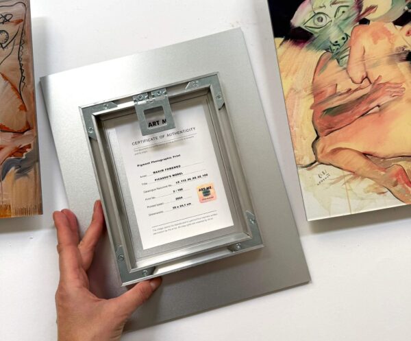 W tylnej części obrazu umieszczony certyfikat autentyczności z numerem seryjnym.