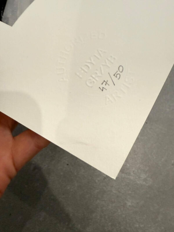 Każdy wydruk jest sygnowany na dolnym marginesie oraz posiada certyfikat autentyczności.