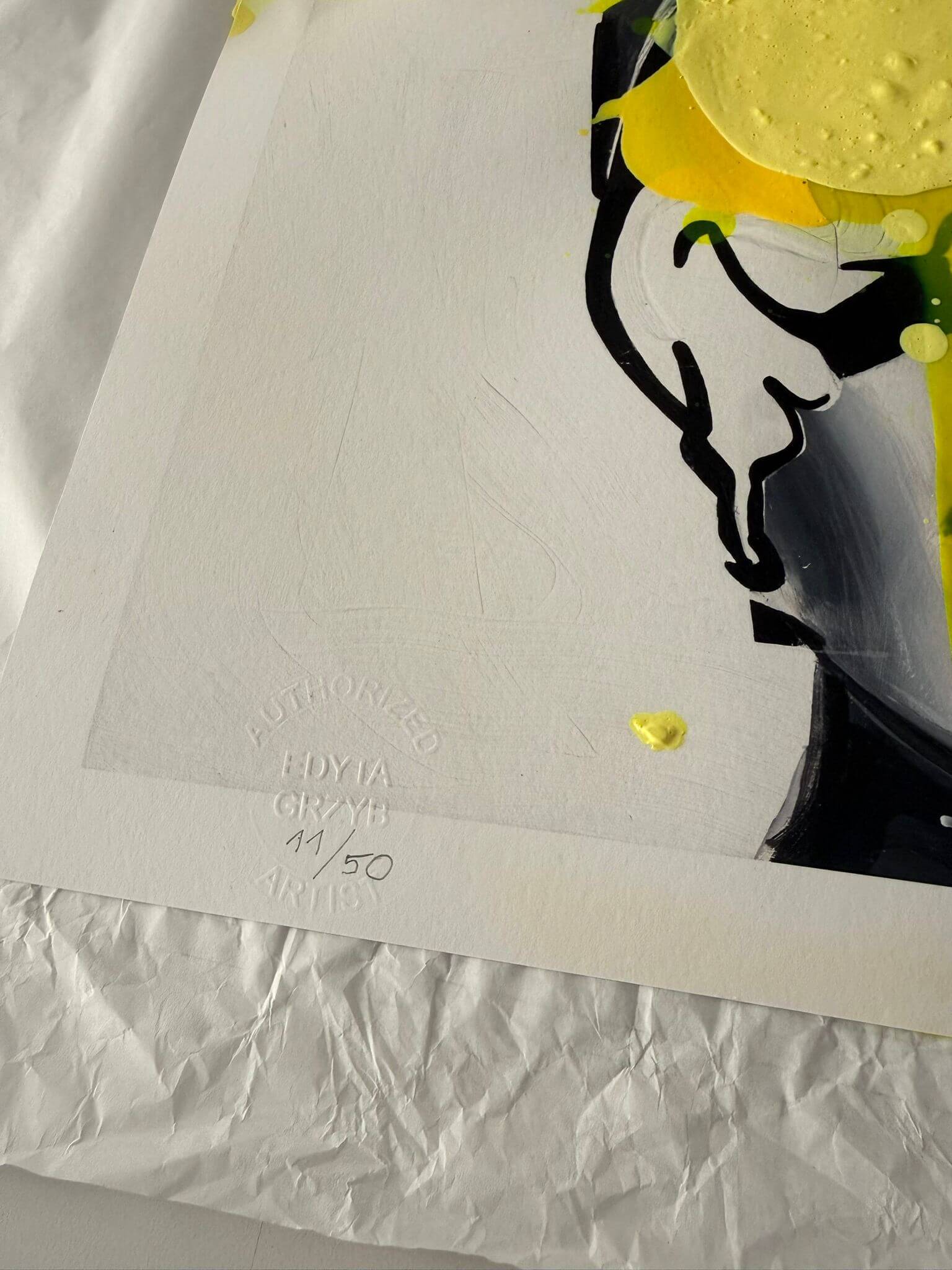 Każdy wydruk jest wykonany na wysokiej jakości papierze i częściowo malowany ręcznie farbami przez artystkę. Podstawowy wydruk pozostaje czarno-biały, natomiast akcenty kolorystyczne są dodawane manualnie, co sprawia, że każda sztuka staje się unikalna. Każdy egzemplarz jest ponadto numerowany i sygnowany na przednim marginesie.